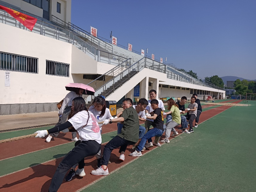 5月30日,师生趣味运动会在第二运动场成功举办。比赛分为拔河、呼啦圈过山车、螃蟹接力跑和障碍跑四个项目,其中障碍跑项目又包括指压板接力冲刺、20m袋鼠跳、运送乒乓球、大象鼻子转圈四个部分。赛况激烈,参赛队员精神抖擞,队友们加油鼓劲,场面很是热闹。整个趣味运动会充满挑战性、趣味性,也充满协作性。最终,计算机学院取得综合排名第一的好成绩,公务学院和理学院-外语学院紧随其后,分别位列第二和第三,其余队伍也都取得了较好的成绩。