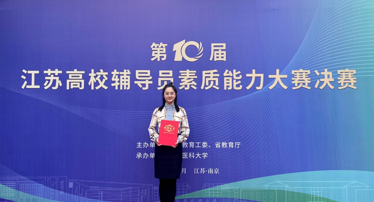 4月19日至20日,第十届江苏高校辅导员素质能力大赛决赛在南京医科大学举行,全省7个研修基地复赛推选出的40位选手同台竞技。江苏省教育厅一级巡视员徐子敏,南京医科大学校领导兰青、沈瑞林出席,全省高校400余名辅导员现场观摩。通过基础知识测试、案例分析、谈心谈话三个环节的激烈角逐,我校知产学院研究生辅导员周志聪荣获三等奖。