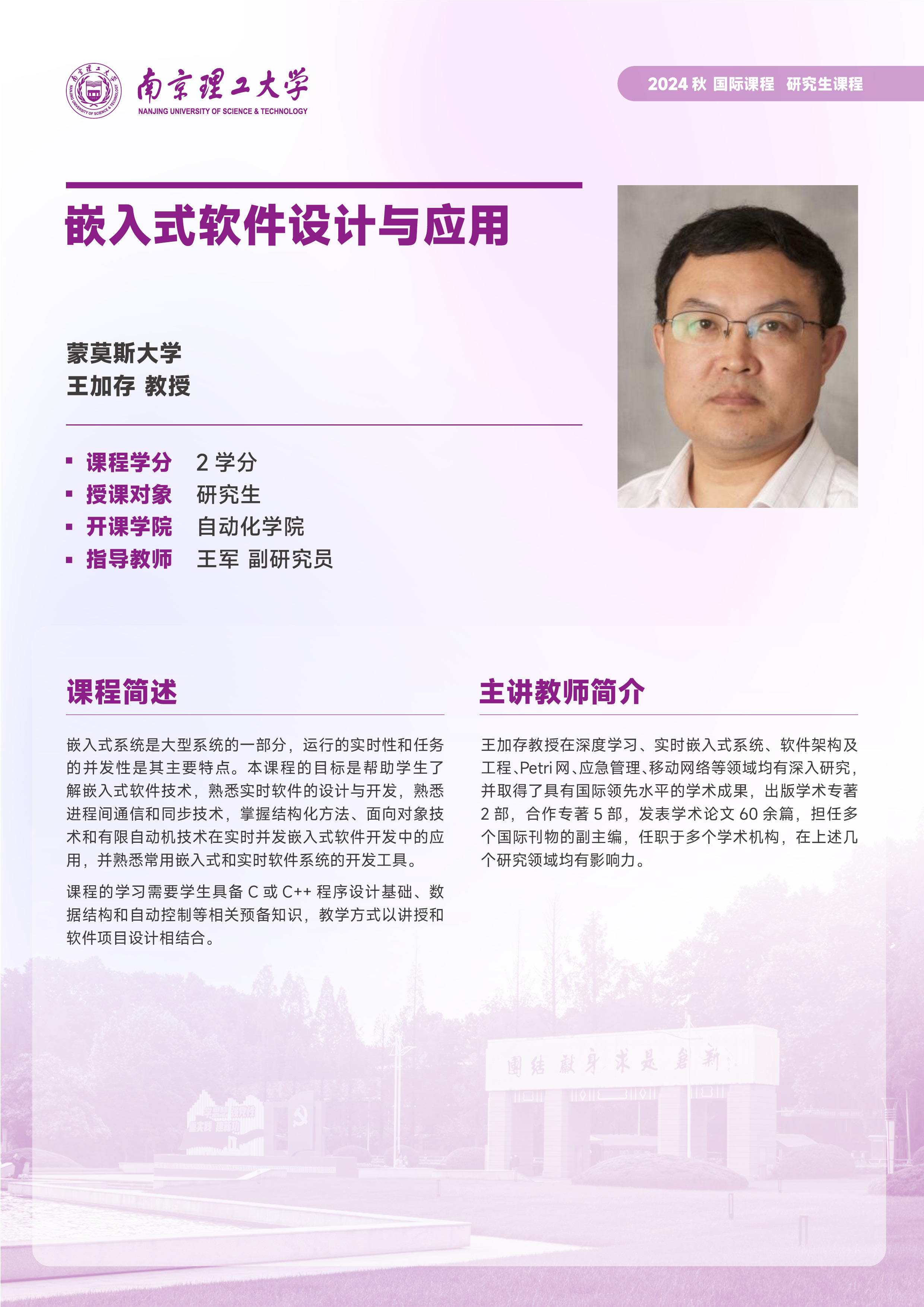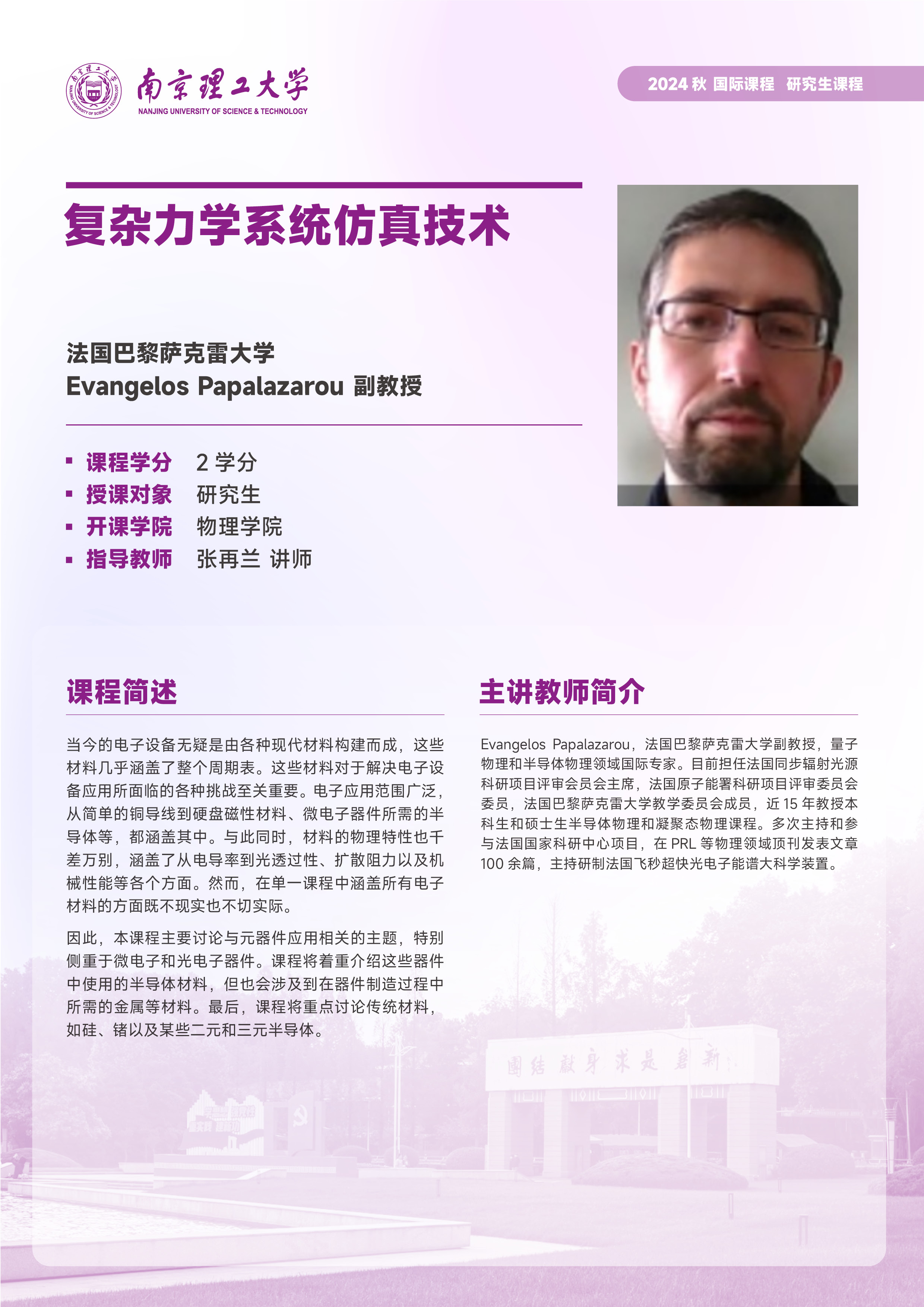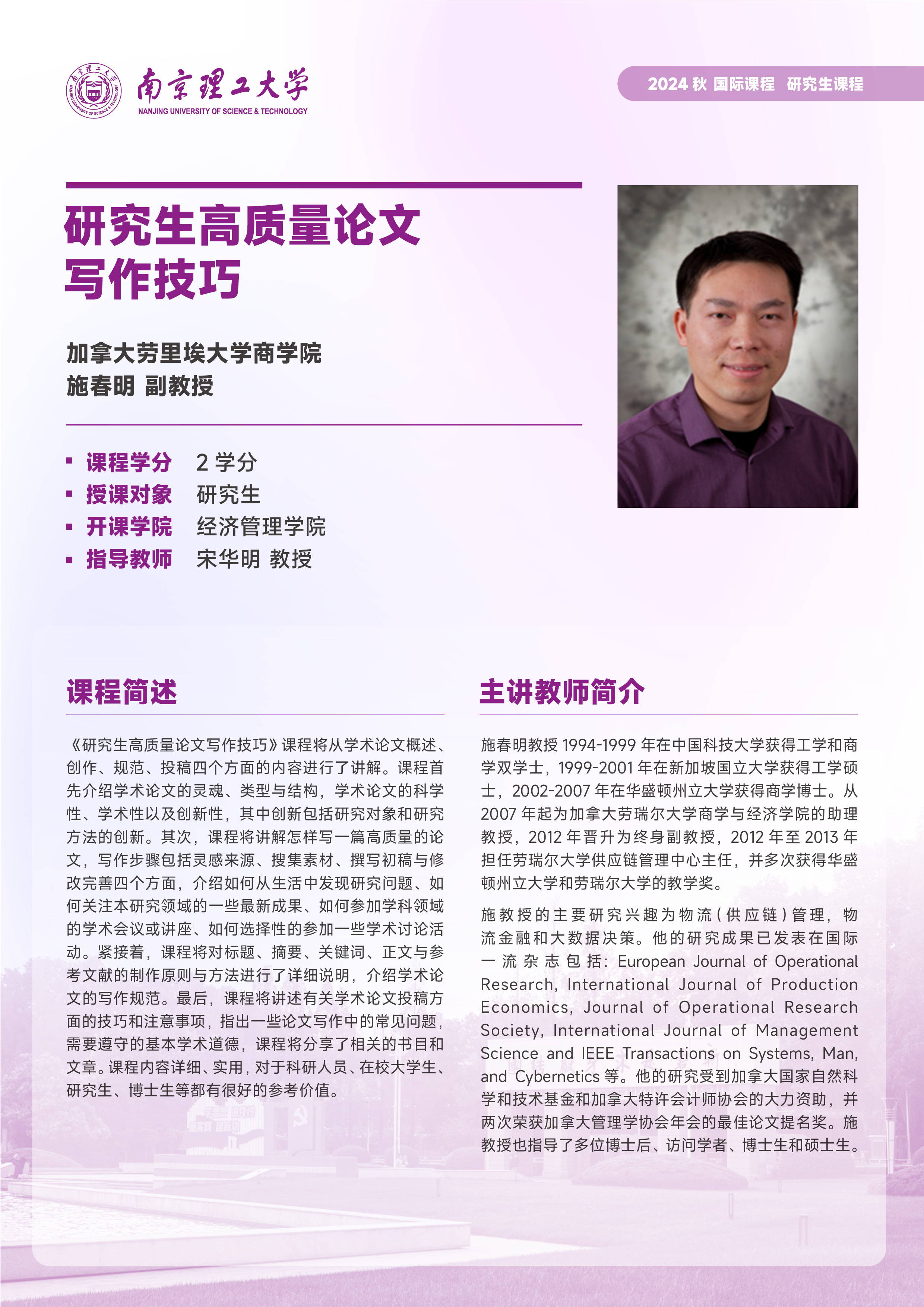 季学期开设的研究生国际课程列表: