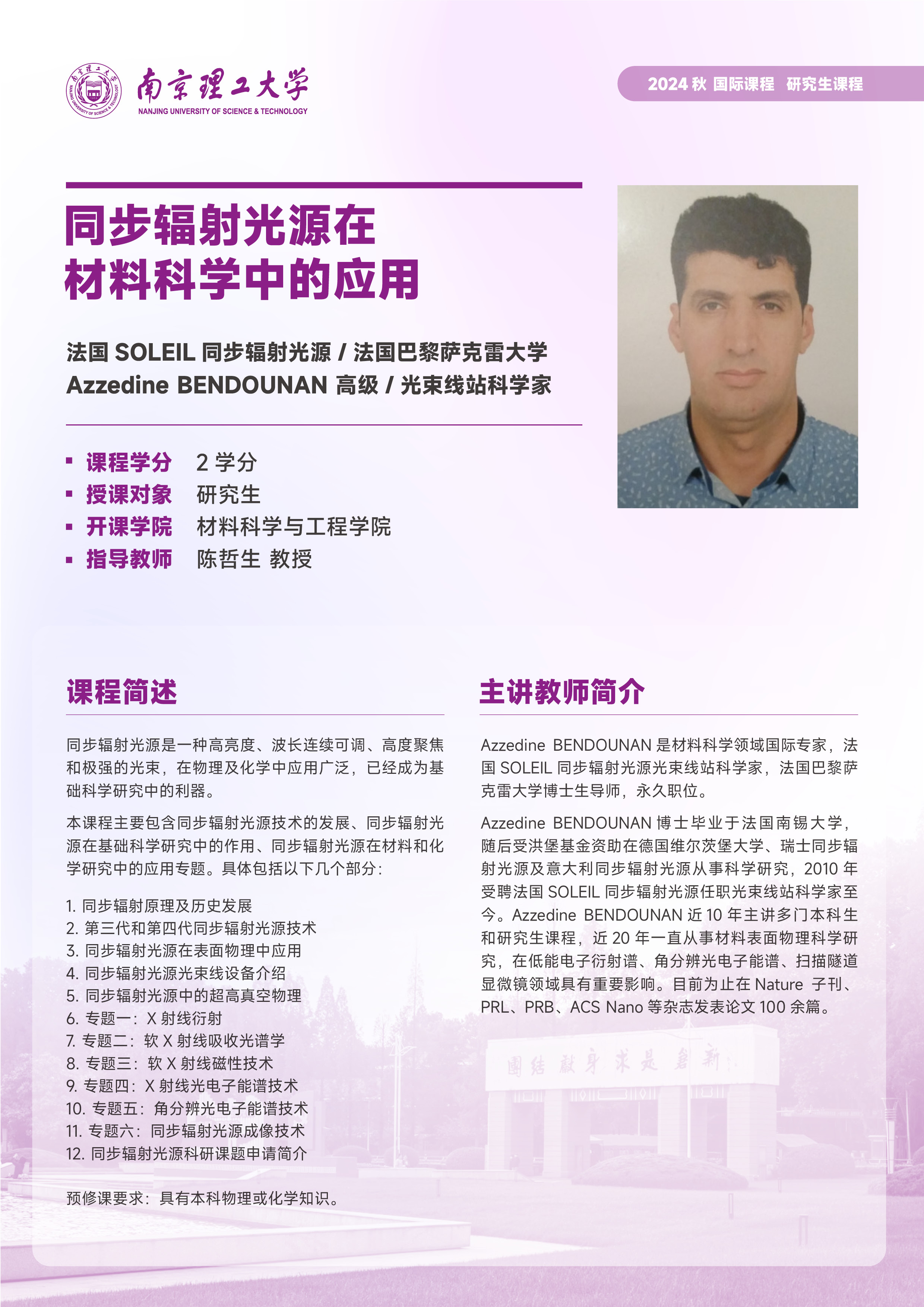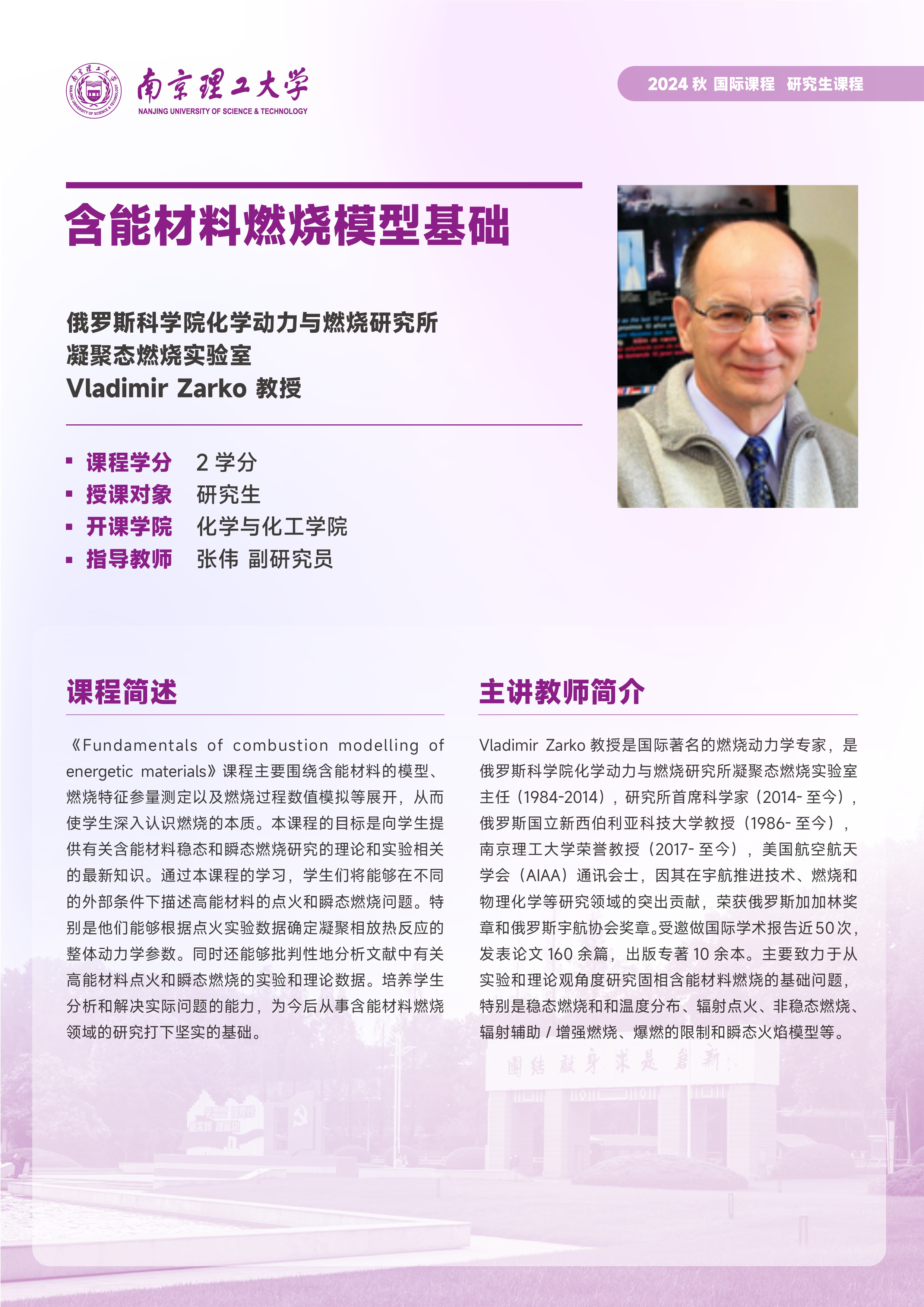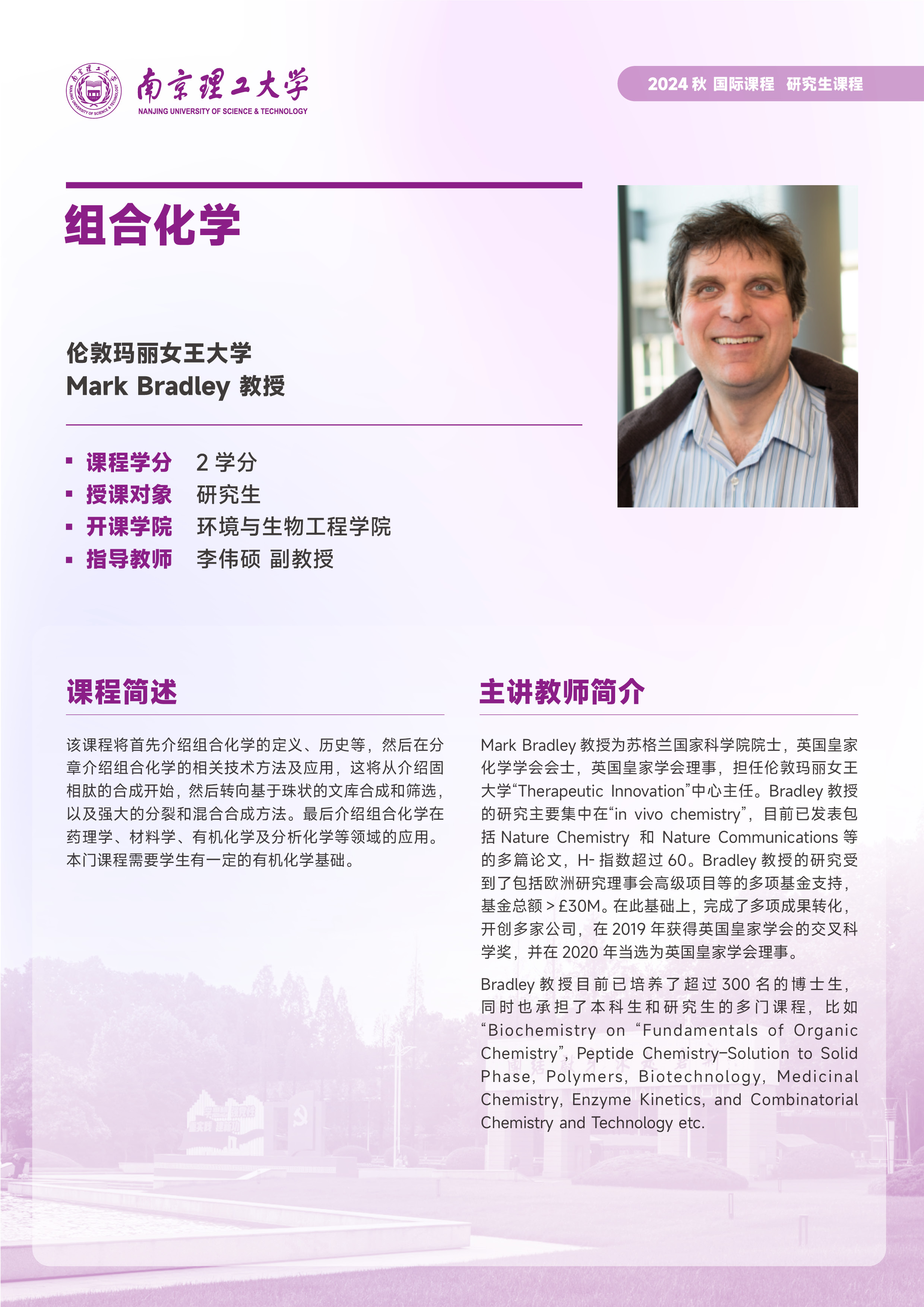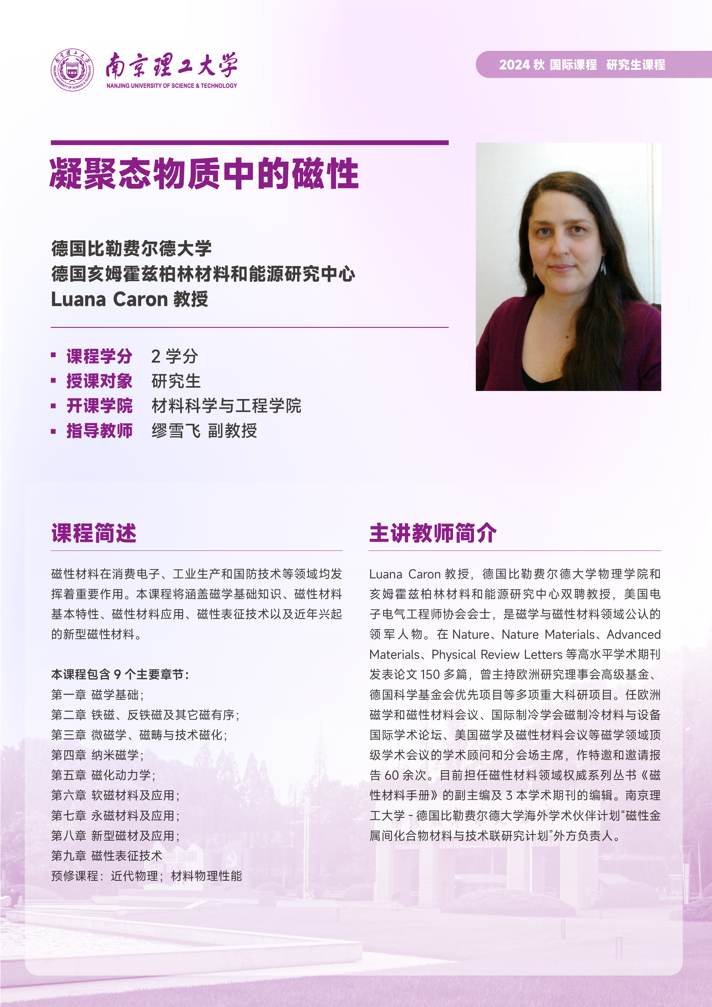 季学期开设的研究生国际课程列表: