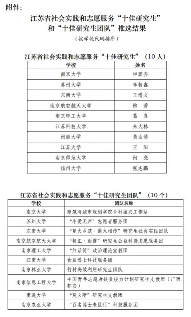 近日,由江苏省学位与研究生教育学会、江苏教育报刊总社联合开展的江苏省社会实践和志愿服务“十佳研究生”和“十佳研究生团队”揭晓,根据《关于公布江苏省社会实践和志愿服务“十佳研究生”和“十佳研究生团队”推选结果的通知》(苏学研会〔2021〕9号),我校经济管理学院葛真同学荣获江苏省社会实践和志愿服务“十佳研究生”,马克思主义学院“红话筒”政治理论宣教团荣获江苏省社会实践和志愿服务“十佳研究生团队”。