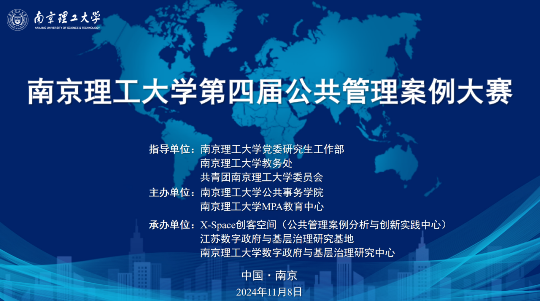 11月8日,南京理工大学第四届公共管理案例大赛决赛在公共事务学院134报告厅隆重举办。本次公共管理案例大赛由校党委研究生工作部、教务处和校团委指导,公共事务学院、MPA教育中心主办,X-Space创客空间(公共管理案例分析与创新实践中心)、江苏数字政府与基层治理研究基地、南京理工大学数字政府与基层治理研究中心承办。