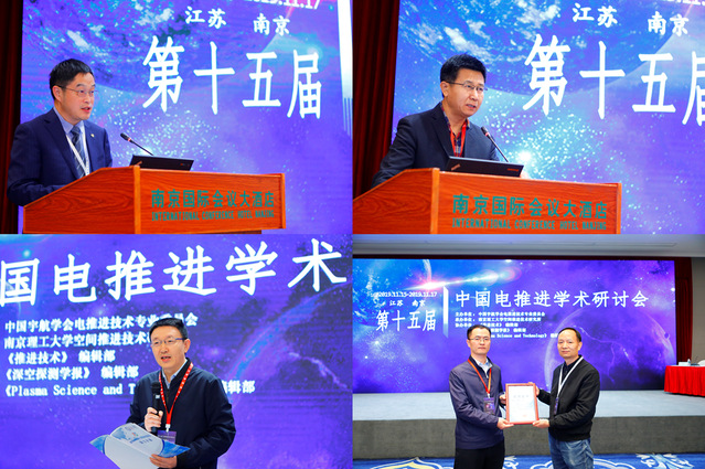2019年11月15日至18日,第十五届中国电推进学术研讨会在南京召开,会议由中国宇航学会电推进技术专业委员会主办,南京理工大学空间推进技术研究所承办,大会吸引了来自华中科技大学、哈尔滨工业大学、北京航空航天大学、大连理工大学、北京理工大学、西北工业大学、大连海事大学、航天科技五院502所、航天科技五院510所、航天科工二院206所、航天科技六院801所、航天科技六院11所等60余家单位的260余名特邀代表和青年学者参加,是南京理工大学首次承办的大型航天技术领域的全国性会议。
