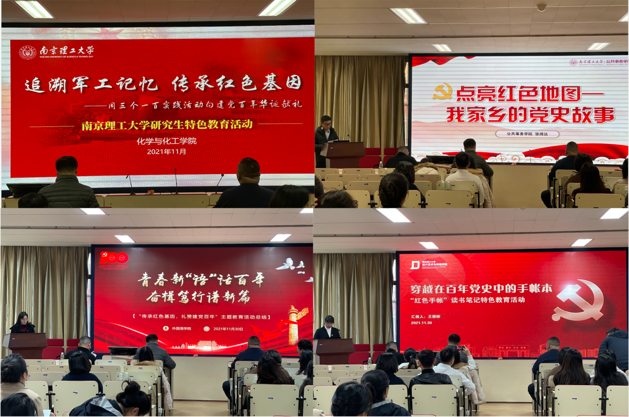 自动化学院挖掘党史精神富矿,开展“三分钟党史青年说”研究生主题教育活动,打造“学、践、悟、讲”四位一体学习教育模式。化学与化工学院将军工精神融入研究生思想政治教育,用“三个一百”(即:寻访百名代表、走访百处地址、诵读百封家书)实践活动向建党百年华诞献礼。材料科学与工程学院创新活动载体,录制《灯火里的中国》MV,通过“音乐+思政”的模式,用大学生喜欢的方式诠释党史,将党史学习教育融入思政课堂。公共事务学院将党史学习教育与实践育人有机结合,创新开展“点亮红色地图——我家乡的党史故事”。