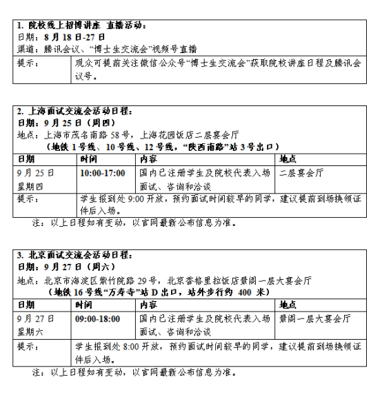 博士生国际招生面试交流会旨在为有志继续深造攻读博士学位的学生及在职申请者和国外招收博士生的院校导师搭建面对面交流、沟通与一对一面试平台,迄今已举办十六届。今年线下面试活动开始前,招博院校教授代表将行通过线上讲座向申请者介绍招博项目、申请流程、奖学金等信息助力申请者更有针对性做好充分准备以便更好地参加线下面试交流活动。