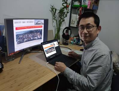 陈政武老师《英语演讲》采用ZOOM视频会议开展直播教学,从英语演讲的基本原理、基本原则和基本技巧引入,帮助学生发展英语演讲能。课堂上,陈老师向学生传授英语演讲的基本知识和演讲稿撰写技巧,和学生实时交流并进行点评。直播结束前,陈老师总结了课程知识点,并鼓励学生提出宝贵意见,更好地完成线上教学内容。陈老师在完成自身教学任务的同时,热心帮助外教开展在线教学,23日当天陈老师帮助外教Harry采用ZOOM视频会议顺利开展《实用口语》课程的直播教学。