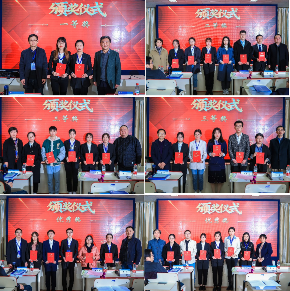 本次大赛分为初赛和决赛两个阶段,在计分组将初赛文本匿名评审成绩和决赛现场汇报成绩加权汇总后,共产生一等奖2项,二等奖6项,三等奖10项,优秀奖11项。评审专家和相关领导为团队获奖代表颁奖并合影留念。