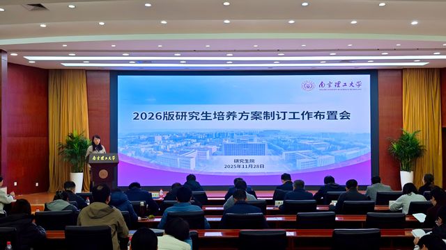 研究生院副院长江芳就2026版研究生培养方案制订工作进行了具体布置。她系统梳理了近年来国家层面出台的研究生教育相关政策文件,介绍了培养方案制订前期工作开展情况,逐条解读了《南京理工大学关于制订2026版研究生培养方案的指导意见》的核心要义与实施要求,通过对比2022版培养方案,重点说明了本次培养方案的改进举措,并明确了各阶段工作任务及时间节点安排。