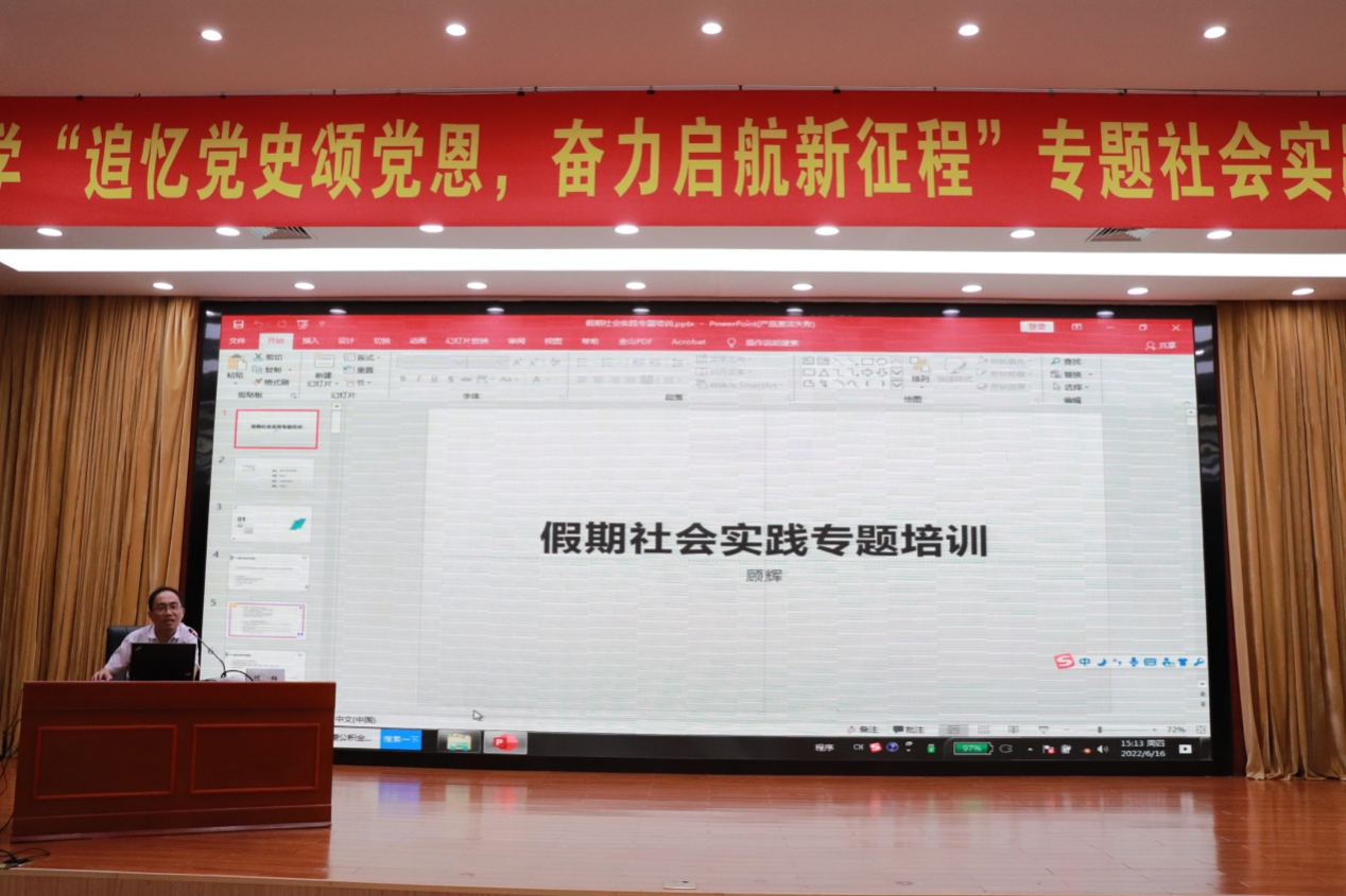 6月16日下午,由党委研究生工作部主办、公共事务学院承办的“追忆党史颂党恩,奋力起航新征程”研究生社会实践活动出征仪式在科技会堂举行。党委研究生工作部部长齐玉辉,公共事务学院党委书记黄磊、党委副书记徐蔡余、社会学系教授顾辉,研究生院思想教育与管理办公室副主任缪乾以及各学院研究生辅导员、各实践团队代表参加出征仪式。仪式由徐蔡余主持。