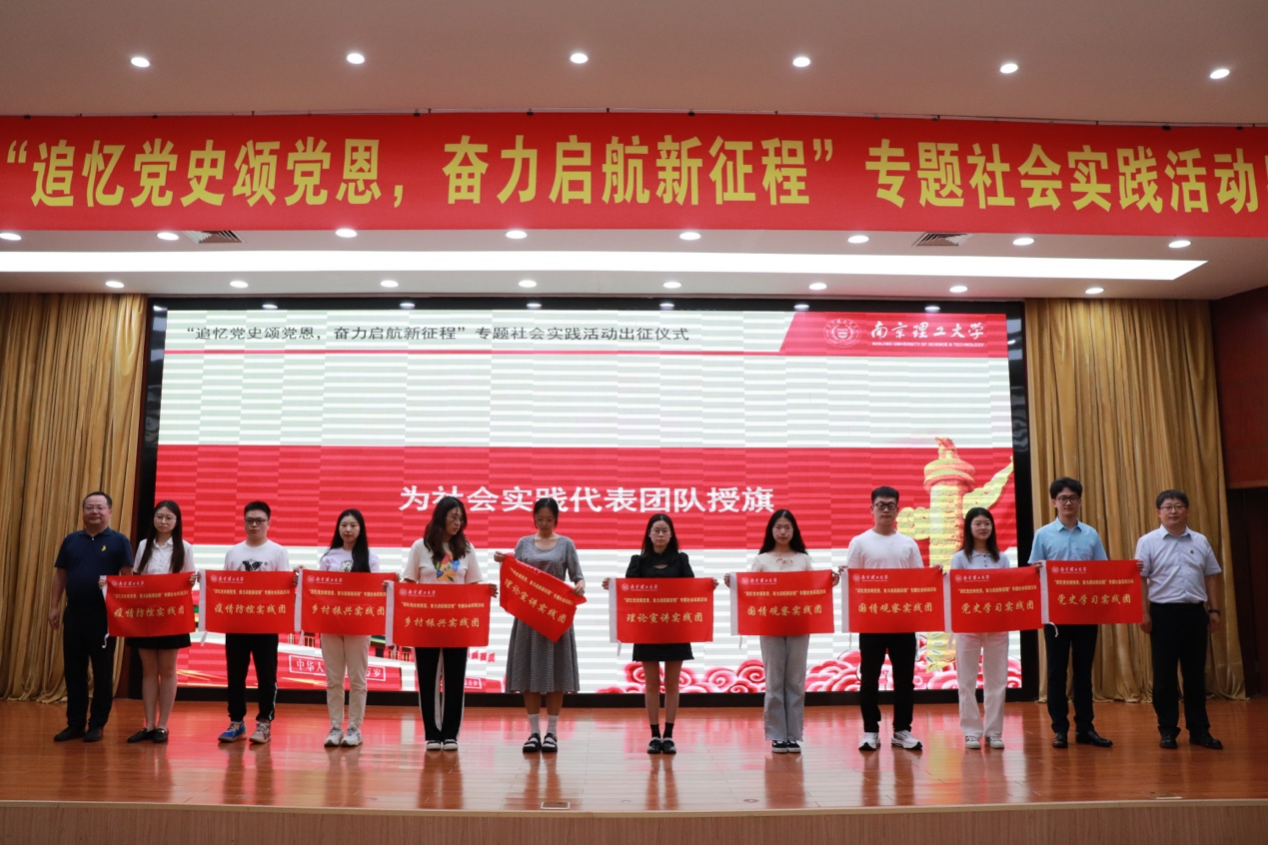 齐玉辉、黄磊为社会实践代表团队授旗。