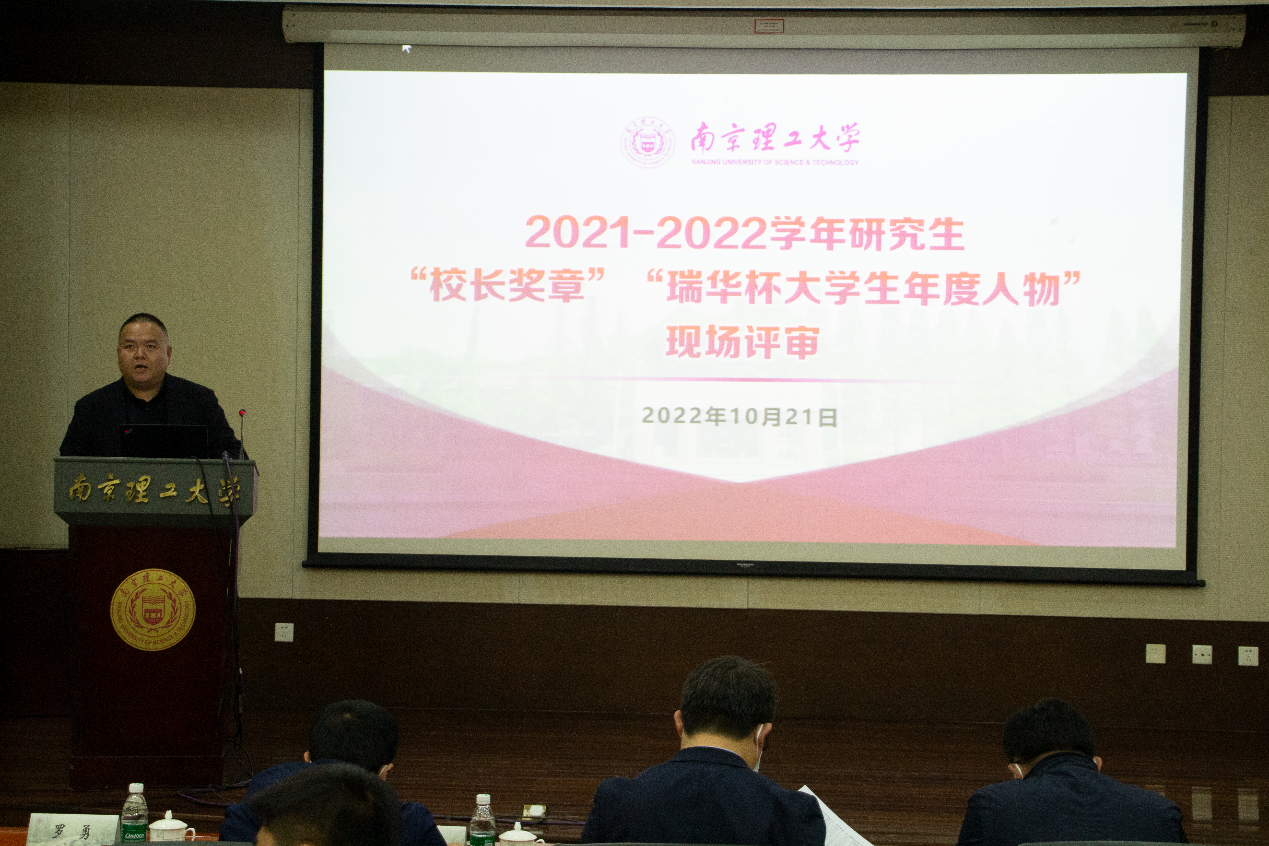 10月21日下午,2021−2022学年度南京理工大学研究生“校长奖章”和“瑞华杯大学生年度人物”现场评审在学术交流中心第一报告厅举行。党委研究生工作部部长兼研究生院副院长齐玉辉、党委组织部副部长崔涛、党委宣传部副部长曾绍军、学生工作处副处长罗勇、校团委副书记孙国杰出席活动并担任评委。