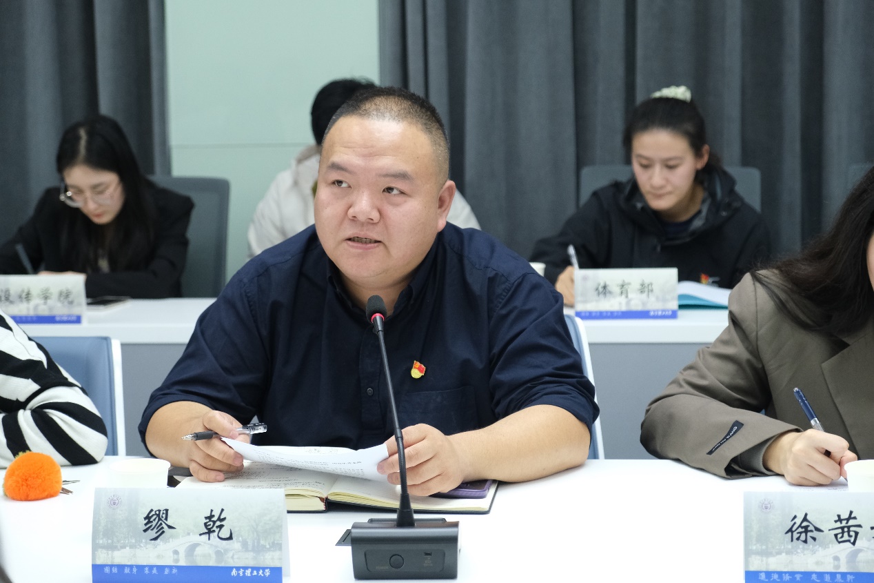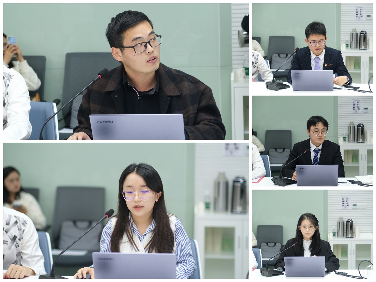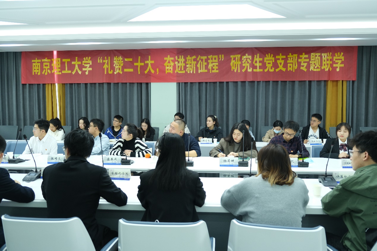 首批江苏省党建工作样板支部分享党的二十大精神学习心得体会,并结合支部建设及开展的各项学习活动进行汇报。化学与化工学院应用化学系博士研究生党支部副书记沈李啸表示支部弘扬“国之所需,吾志所向”的化院精神,以传承和弘扬军工精神为己任,坚持“党建与专业育人融合发展”的工作理念,深耕国防军工领域,发挥军工精神引领辐射作用,为中国国防事业发展贡献青春力量;经济管理学院博士生第一党支部副书记侯欣汝汇报了支部“一体两翼三引领”高校基层党支部工作新模式,并创新“四点半”微党课、红色影视作品配音大赛等年轻人喜闻乐见的方式开展党的二十大精神学习活动;能源与动力工程学院博士生第一党支部书记李晋峰以“自信自强守正创新,踔厉奋发勇毅前行”为题介绍了支部党的二十大精神学习情况,并交流了党支部建设经验;自动化学院自动控制系博士生第三党支部成员贺勇钦从树品德、重品质、讲品味、务品系四方面介绍了支部工作与成效,力争打造战斗堡垒示范博士生支部,支部通过参观南京理工大学发展成就展、召开萃智沙龙等多样化的活动进行党的二十大精神学习;公共事务学院社会工作硕士党支部书记刘恒菀介绍了支部以支部共建为路径、以创新方法为抓手、以特色活动为延伸、以社会实践为平台的建设思路,支部通过党课、主题讲座等形式学思践悟党的二十大精神,她表示作为青年党员应提高思想认识、增强工作本领、牢记使命担当。