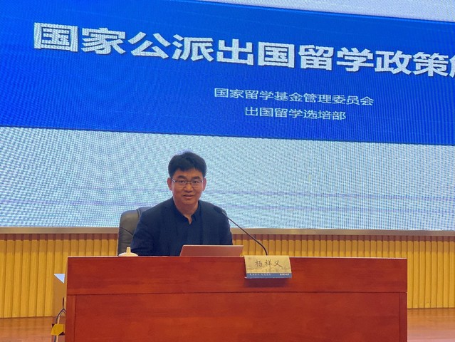 座谈会结束后,杨祥义主任在蔓菁报告厅为我校学生进行了2023年国家公派出国留学政策宣讲,宣讲会由研究生院副院长江芳主持,我校200余学生参加了宣讲会。