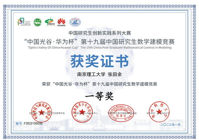 3月18日,2022年“中国光谷-华为杯”第十九届中国研究生数学建模竞赛颁奖会在武汉华中科技大学召开,我校张田余、杨涛、吴成鼎三位同学荣获一等奖,作为南京理工大学的获奖代表参加了颁奖典礼。