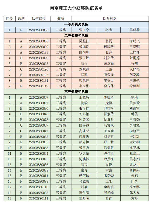 “中国光谷·华为杯”第十九届中国研究生数学建模竞赛于2022年10月6-10日举行,来自国际和全国各省、自治区、直辖市、特别行政区共465个研究生培养单位的17970队研究生交卷参赛。12月14日,组委会公示了获奖名单,本次比赛我校共获奖29项, 其中全国一等奖1项,全国二等奖9项,全国三等奖19项(名单见附表)。