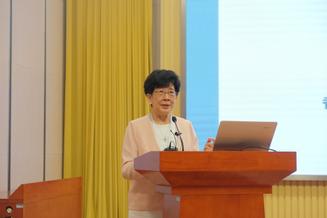 致辞环节结束后,进行了中国MSW教育整体增能三年行动计划启动仪式,各位嘉宾和现场与会人员共同见证了中国社会工作教育的新征程。本环节由关信平常务副会长主持。协会副会长兼秘书长马凤芝教授作了题为“教育标准建设与中国社会工作教育和学科高质量发展”的报告,全面详细地阐释了中国社会工作教育协会三年行动计划的项目背景和意义,她强调了教育标准建设对优化治理结构、提升治理效能、助力社会工作和社会工作教育高质量发展、在全球治理中贡献中国经验的重要作用。