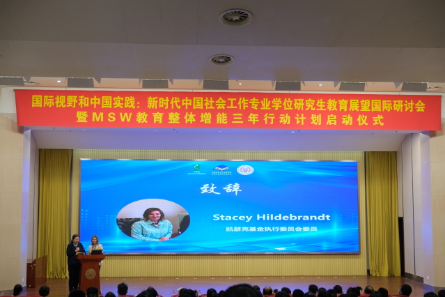 Stacey Hildebrandt女士提到凯瑟克基金在过去的三十多年一直支持中国社会工作教育的发展,希望本次MSW教育整体增能三年计划能够通过培养社会工作教育标准的研究、人才培养、提升社会工作能力建设,更有效地服务社会大众。