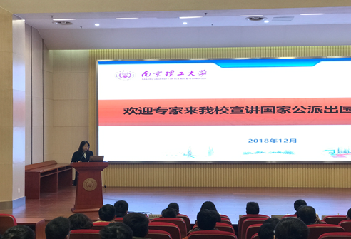 2018年12月14日,我校2019年国家公派出国留学政策宣讲会在校图书馆蔓菁报告厅顺利举行,国家留学基金管理委员会出国留学选培部龙嫚主任应我校邀请来访并解读2019年国家公派出国留学政策。研究生院副院长张琨、国际交流合作处副处长王瀚、教务处副处长王栋及相关工作负责人出席了会议。