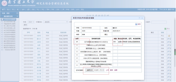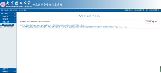 具体操作为:首先在研究生院主页(网址://m.risuiken.com/)右上方“管理信息系统”入口登陆,用户名为学号,密码为出生年月日8位数字,登录后修改密码。其次点击“分级—英语—入学英语水平登记”,再点击“申请”,选择’√’左边小方框对应按钮,根据本人英语水平情况录入具体外语成绩分数(有成绩分数的一定要按格式填写数字便于统计)、并按照格式要求上传英语六级成绩单或证书扫描件(注:上传后点击查看自己要能查到扫描件才算成功)。