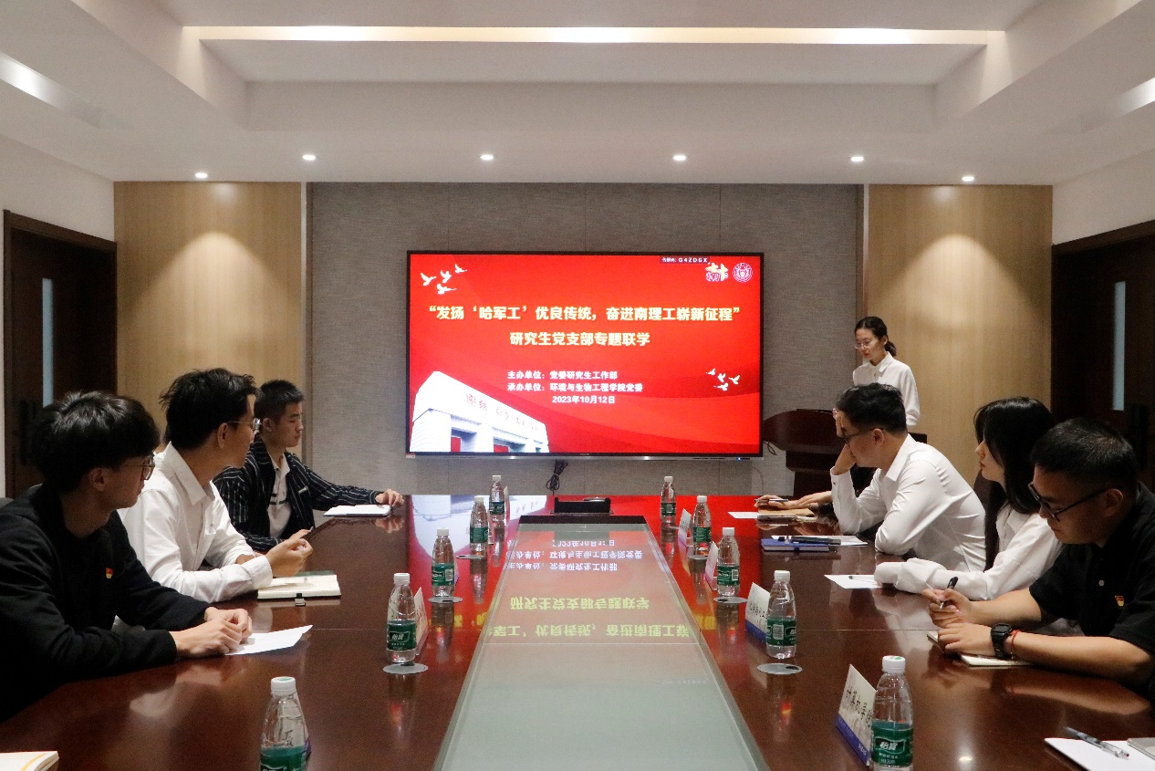 为深入学习习近平总书记致国防科技大学建校70周年的贺信精神以及在哈工程考察时的重要讲话精神,进一步发扬“哈军工”优良传统,深化广大研究生对“强大国防,繁荣祖国”的认识和实践,10月13日下午,学校在环生学院310会议室举办“发扬‘哈军工’优良传统,奋进南理工崭新征程”研究生党支部专题联学活动。活动由党委研究生工作部主办,环境与生物工程学院党委承办。由全国党建工作样板支部环境与生物工程学院博士研究生第一党支部组织委员谷雨桐主持,各学院研究生党支部代表参加。