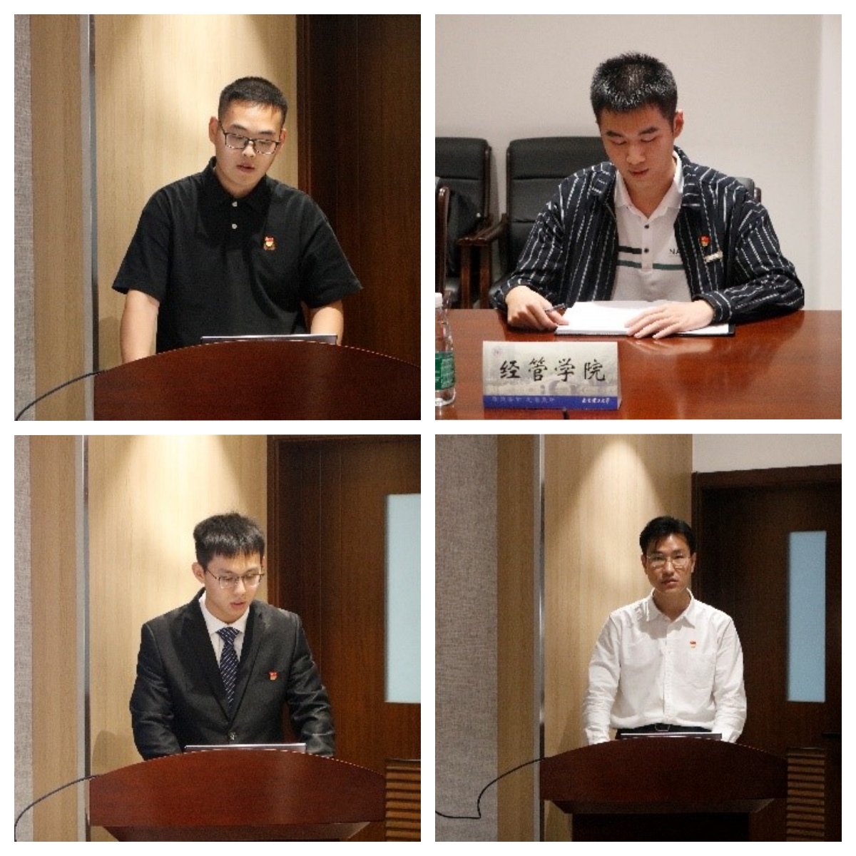 在学习心得分享环节,首批江苏省党建工作样板支部结合支部建设及开展的各项学习活动进行分享汇报。化学与化工学院应用化学系博士研究生党支部书记沈李啸表示,支部要持续深入加强理论学习,在王泽山院士精神的感召和引领下创新科研;经济管理学院博士生第一党支部组织委员吴高科表示,通过此次学习活动感受到了作为一名党员的使命和责任,将号召支部成员为实现“强大国防、繁荣祖国”再创新功;能源与动力工程学院博士生第一党支部书记杨浩威表示,此次学习将勉励支部党员积极奋进,为国家强大贡献青春力量;自动化学院自动控制系博士生第三党支部党员郭佳表示,作为新时代的南理工人,应当发扬“哈军工”优良传统,传承以“献身”为核心的南理工精神;公共事务学院社会工作硕士党支部纪检委员马德成表示,在今后的支部工作中,要坚持以南理工精神凝心铸魂,引导支部党员坚定不移跟党走,为党和人民事业勇毅前行、接续奋斗。