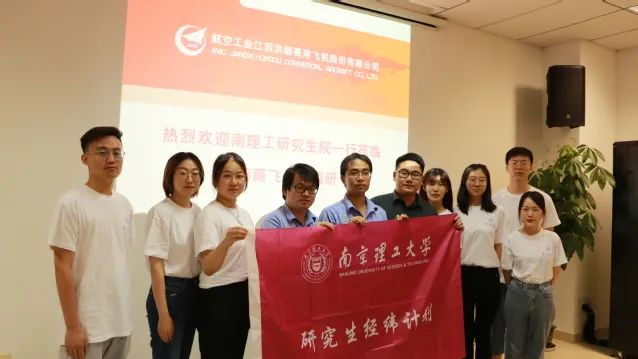 19日下午,实践团队赴航空工业江西洪都商用飞机股份有限公司进行参观学习。团队师生与洪都集团相关负责人及校友进行了座谈交流。在座谈会上,洪都集团人力资源部薪酬福利主管赵祺麟从企业基本情况、主要产品、人才队伍及招聘计划等方面向同学们进行了介绍,并表示希望后续能进一步加强与南理工的合作。人力资源部部长胡国强指出希望同学们以奋斗为本,将成就动机和价值实现结合起来,承担起强军报国的责任与担当。随后,我校机械学院16届硕士校友丁先良,能动学院2019届本科校友邱雨强从自身经历、家国情怀等方面谈了自己的切身体会,鼓励南理学子积极投身国防行业,为国防建设贡献力量。在场的同学们也积极提出了自己感兴趣的问题,与企业负责人和校友进行了深入交流。