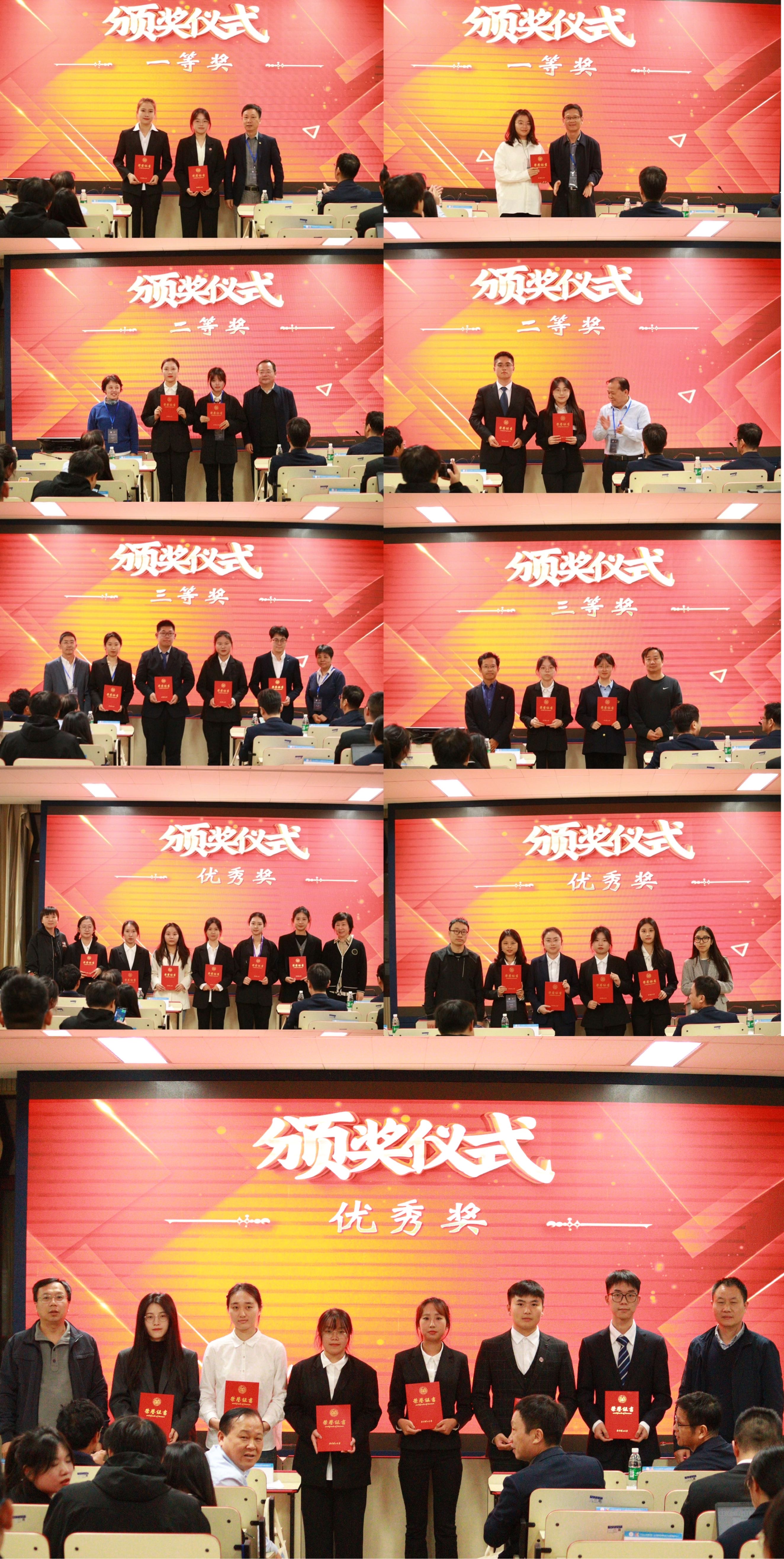 南京理工大学第三届公共管理案例大赛自2023年7月4日启动以来,受到公共事务学院学子的广泛关注,共计34支队伍报名,截至2023年10月9日,收到有效案例文本31份。经大赛组委会材料初审,共31支队伍进入决赛,其中,研究生组共21支队伍,本科生组共10支队伍。在计分组将初赛文本匿名评审成绩和决赛现场汇报成绩加权汇总后,本次大赛共产生本科生组一等奖1项、二等奖2项、三等奖2项、优秀奖5项,研究生组一等奖2项、二等奖2项、三等奖4项,优秀奖13项。评审专家和相关领导为团队获奖代表颁奖并合影留念。