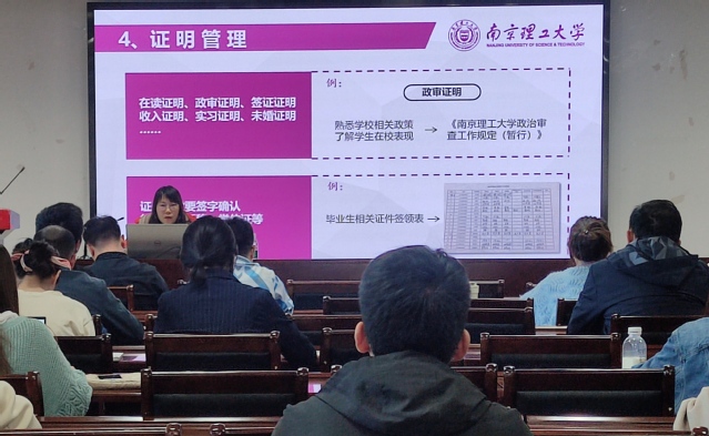 10月20日,能源与动力工程学院研究生辅导员周小乐主讲《研究生日常事务管理》,结合自身多年的工作经验有针对性地解读了在研究生培养计划流程中研究生辅导员的主要工作内容与工作方法。
