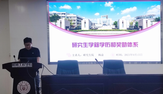 9月15日,党委研究生工作部老师杨益主讲《研究生学籍学历及奖助体系》,结合研究生手册系统梳理讲解了研究生从入校到毕业的相关流程及重要环节工作细则。