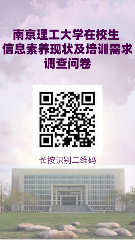 欢迎感兴趣的老师和同学们踊跃参加!同时,为了提升讲座的针对性,图书馆开展在校生信息素养现状及培训需求在线问卷调查,请各位师生扫描页面下方的二维码积极参与调查。