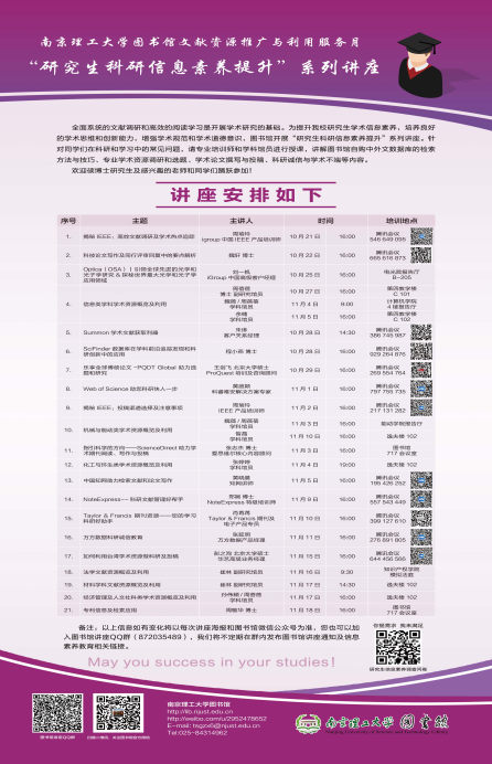 研究生科研信息素养提升系列讲座预告